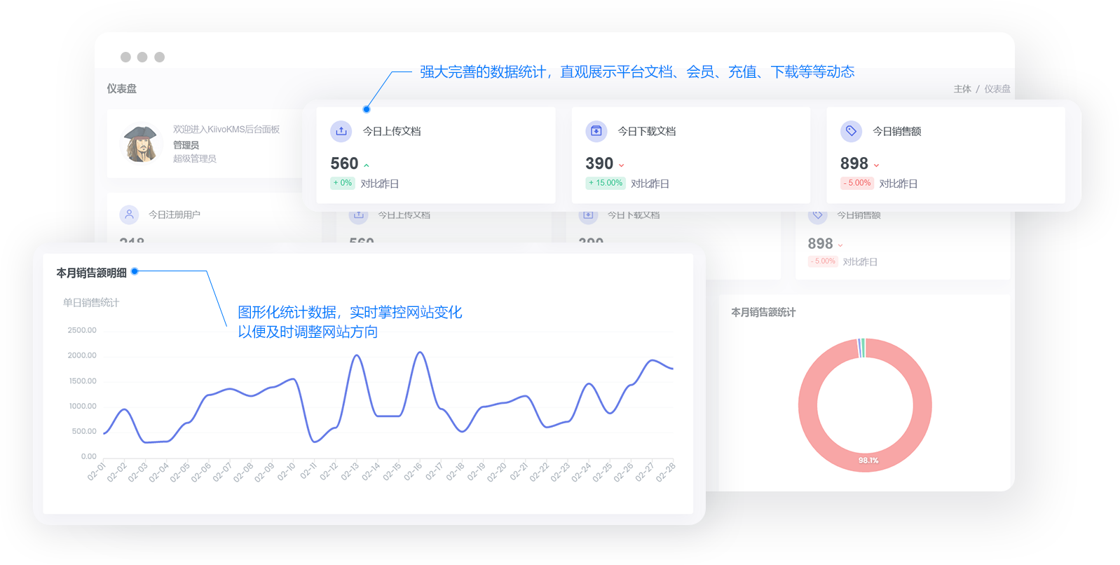 資源、流量、用戶、支付、下載、VIP運(yùn)營等數(shù)據(jù) 可視化分析和跟蹤